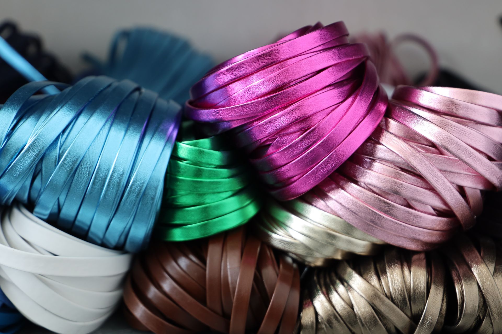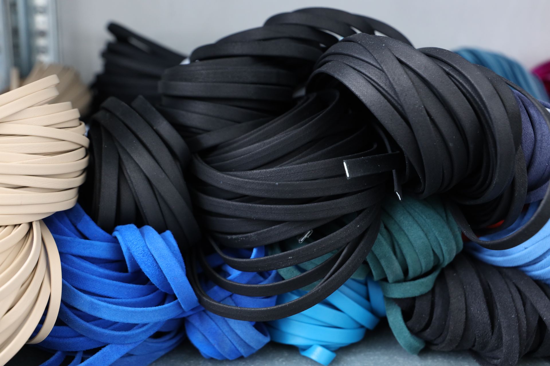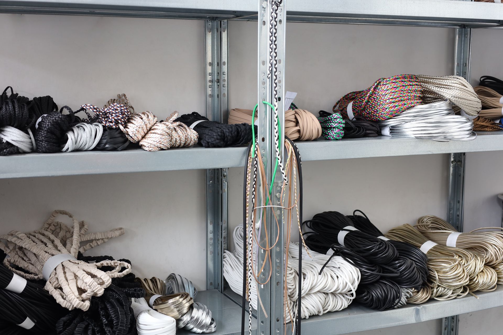 Tra gli accessori per calzaturifici e pelletterie realizzati ci sono, tra gli altri, tomaie forate e intrecciate, fasce, stringhe e scoubidou, mignon di varie tipologie per diversi utilizzi.
