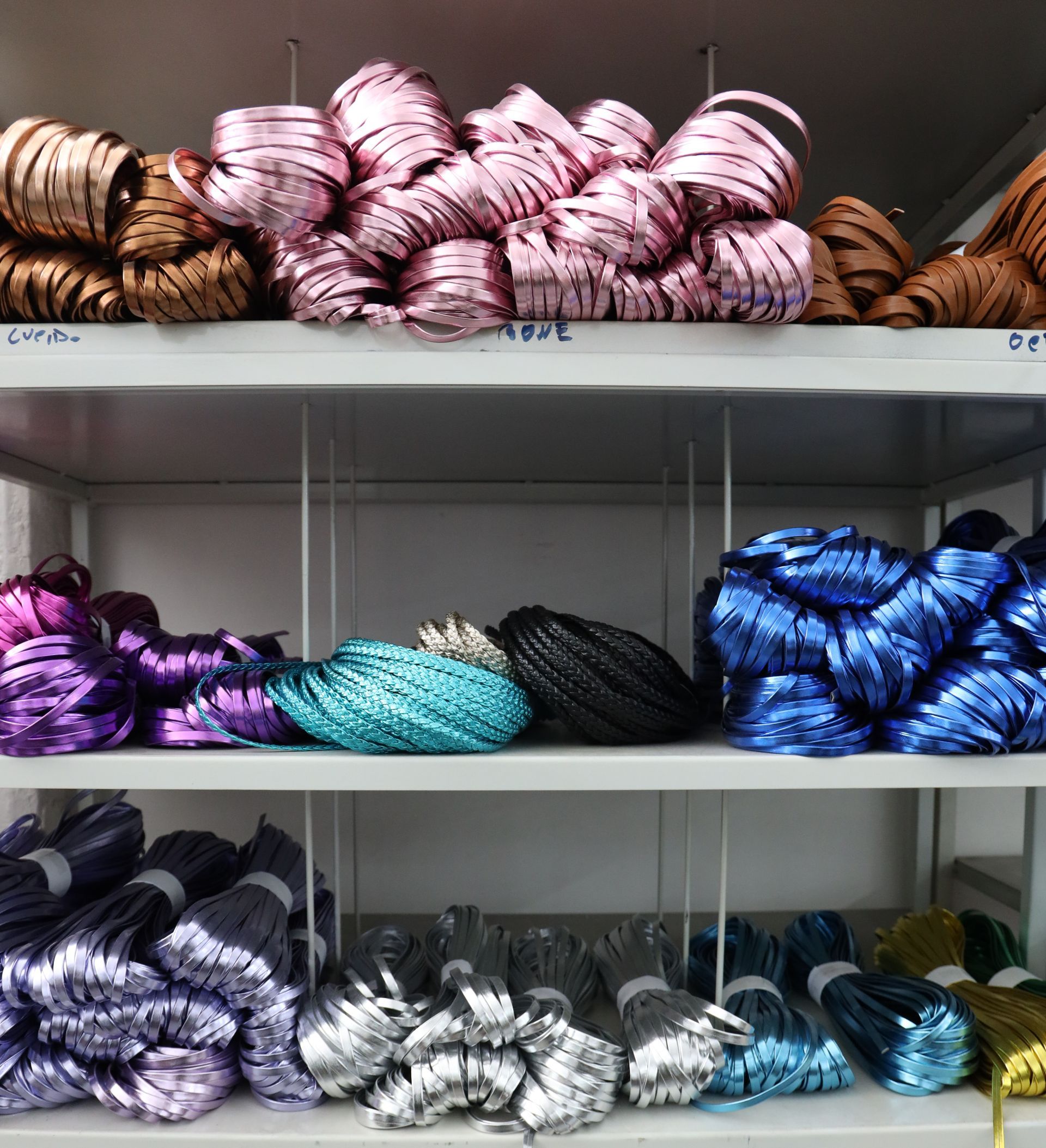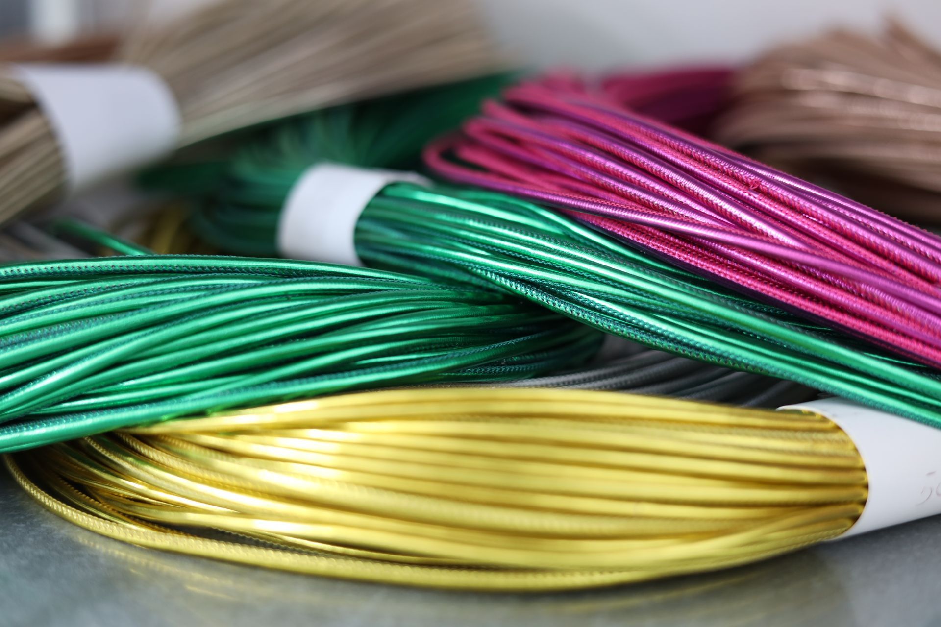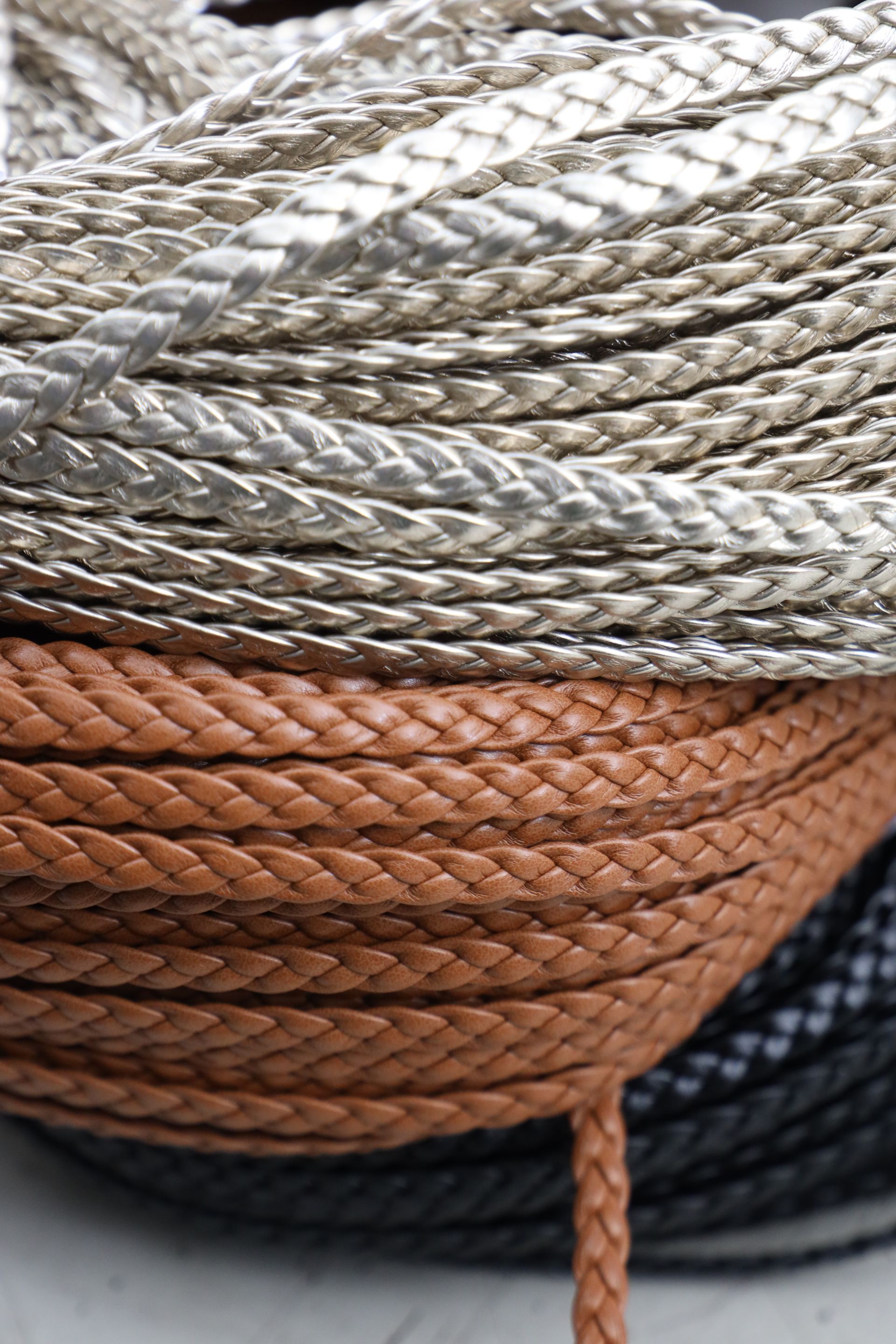 Tra gli accessori per calzaturifici e pelletterie realizzati ci sono, tra gli altri, tomaie forate e intrecciate, fasce, stringhe e scoubidou, mignon di varie tipologie per diversi utilizzi.